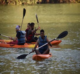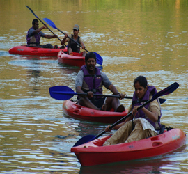 Single and Double kayak boat kayaking is done in kali river where you need to navigate with the help of paddle. Your are some time rowed in heavy kali river rapid and can pump-up your heart beats. he Kali river of Dandeli city is famous for kayaking. Kayak is a boat for a single person to cross a river with the help of an experienced kayaker and Kayaking is basically for adventure lovers. Many tourists visit this place, particularly for kayaking purposes.
