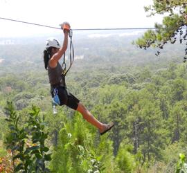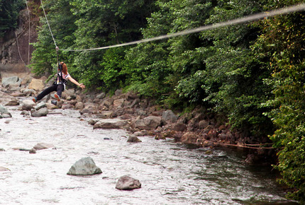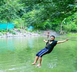 River Zipline activity is just amazing activity where we are sliding over rope with help of pulleys from one side of the river to another side. Ziplining is an outdoor recreation sport/adventure sport where a freely moving pulley is used to ride from the top to the bottom of an inclined cable. You safety is ensured by technically qualified adventure sports experts. Zip Line in Dandeli is the most famous water activities in Karnataka.