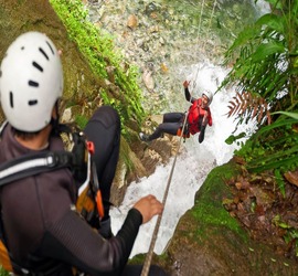 Canyoning is an adventurous sport that is executed by climbing on the rocks of waterfalls. The tourists looking for the best Canyoning in Dandeli must take the help of professional guides to reduce the risks during Canyoning. Canyoning involves rappelling down the waterfall or rocks using different activities such as abseiling, jumping, rappelling, and natural water sliding.