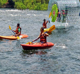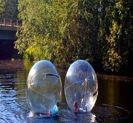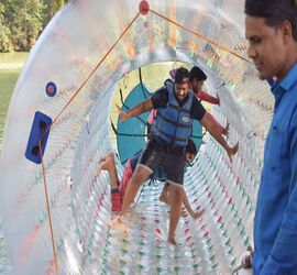 Zorbing in River Water is fun Activity for children / Adults. It is also called water roller where you are rolled in air filled roller balloon. Zorbing is a new recreational adventure sport of rolling downhill inside a transparent ball called zorb. It is a fantastic sensation when you roll or lie or walk inside the transparent ball and feel the coolness of the river water, without getting wet. It is an awesome experience which you should not miss at any cost.